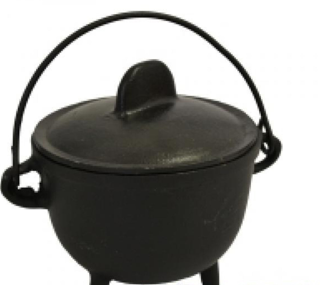 Cast Iron Cauldron with Lid 4.5"D 4.25"H