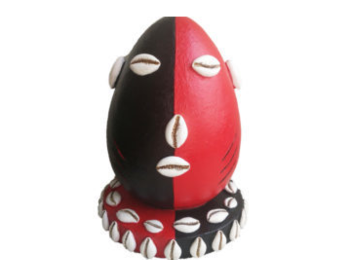 Enormous & beautiful decorated plaster Elegua head with removable decorated plate. A gorgeous addition to anyone's altar. 8" in size