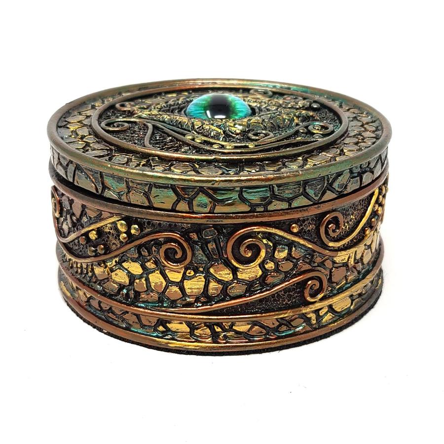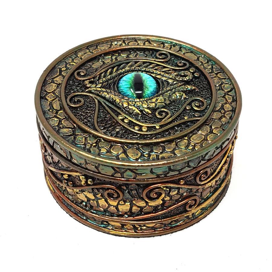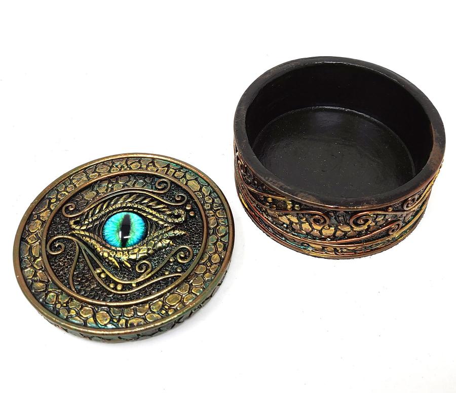 Dragon's Eye Box Poly Resin Box *Please be advised that minor scratches and paint imperfections may occur on poly resin boxes. These products are meticulously handcrafted and hand-painted, which adds to their unique charm and character. While we strive for the highest quality in every piece, slight variations in finish and texture are an inherent part of the artisanal process.*