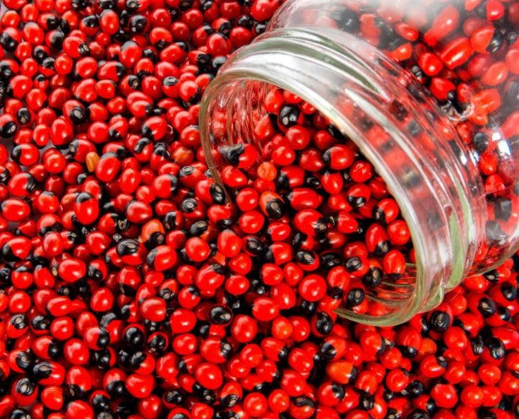 One of the most popular magickal ingredients in Vudun (Voodoo ,) is Peonia seeds. Also called Crab’s Eye, Lady Bug Seed, Sailor’s Valentine, Jambee beads, Wayruros and Huayruro (pronounced Why-RU-RO) seed these tiny treasures of magick can be worn, carried, or placed about your space to gain special blessings. The seeds are used all across the globe and their power is known worldwide.