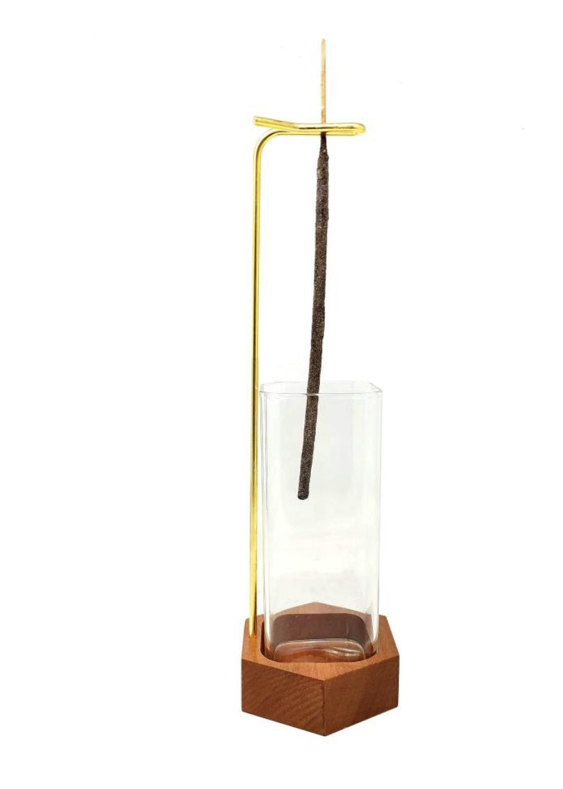 Upside Down Incense Holder with Wooden Base and Glass Ash Catcher